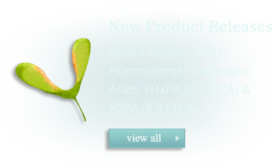 Our inventory of emerging environmental contaminants such as Brominated Flame Retardants (BFRs) and Perfluorinated Compounds (PFCs) also continues to expand. Wellington currently offers a number of individual native and mass-labelled reference standards as well as many solution/mixtures to support research in these areas.